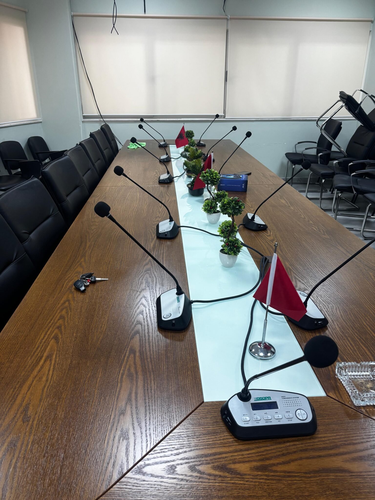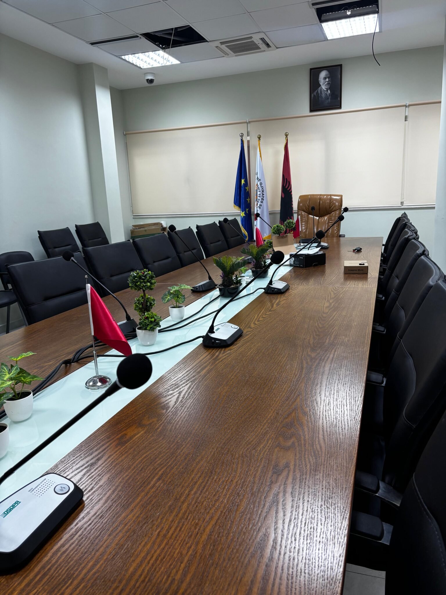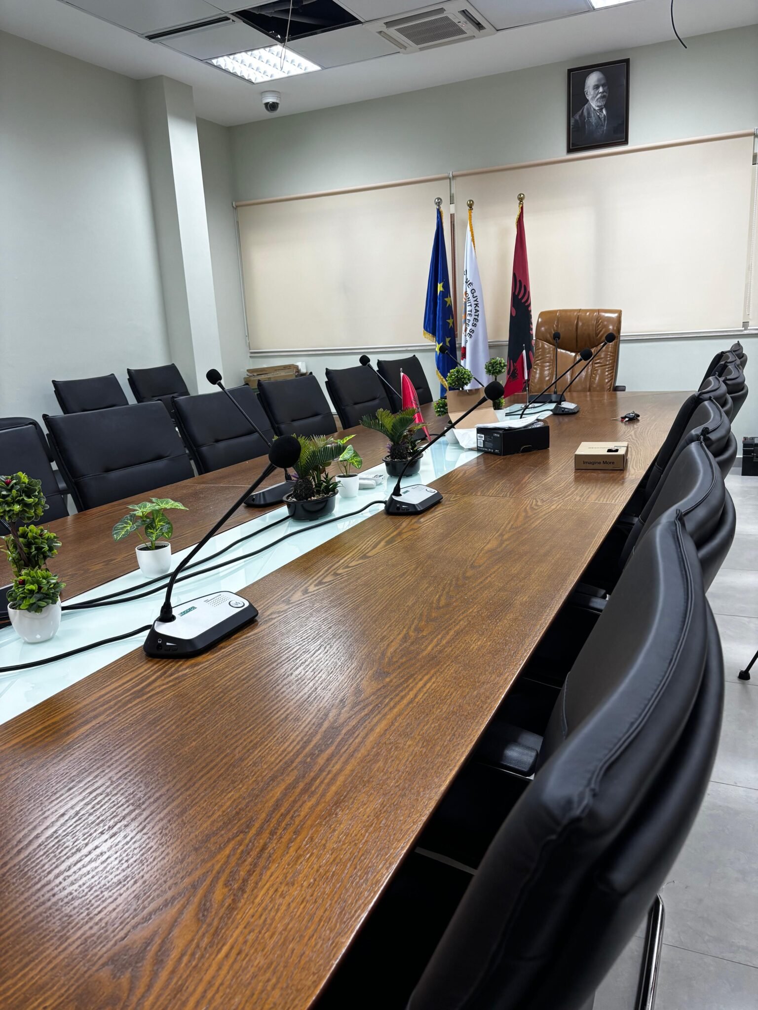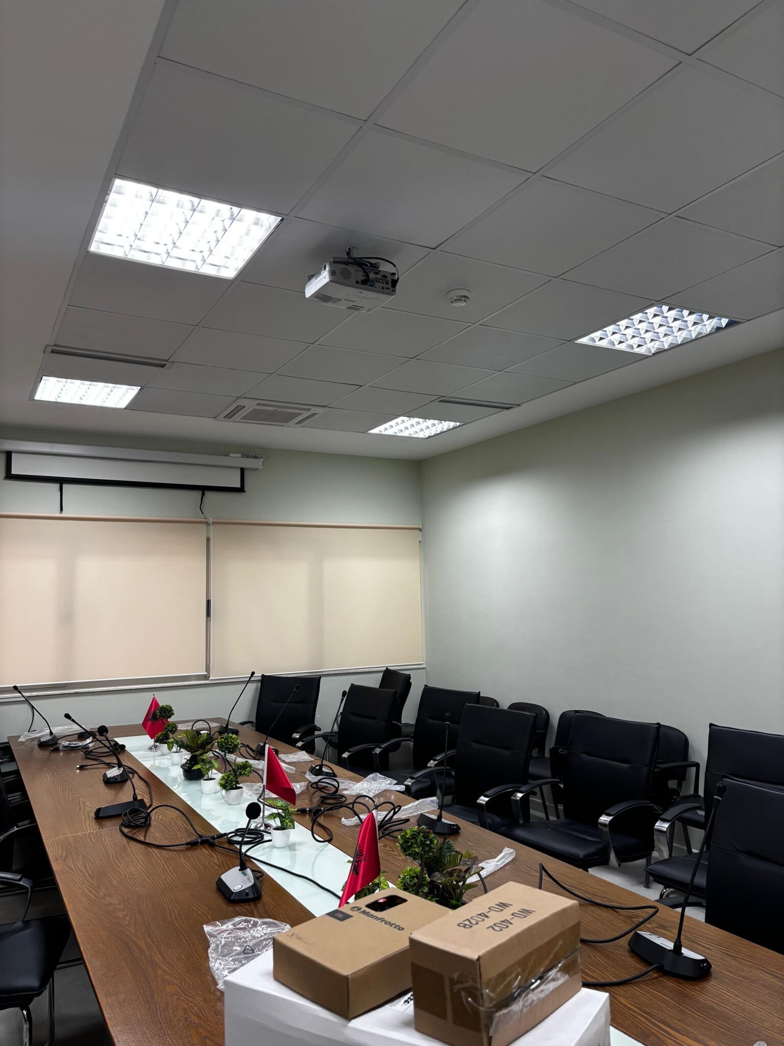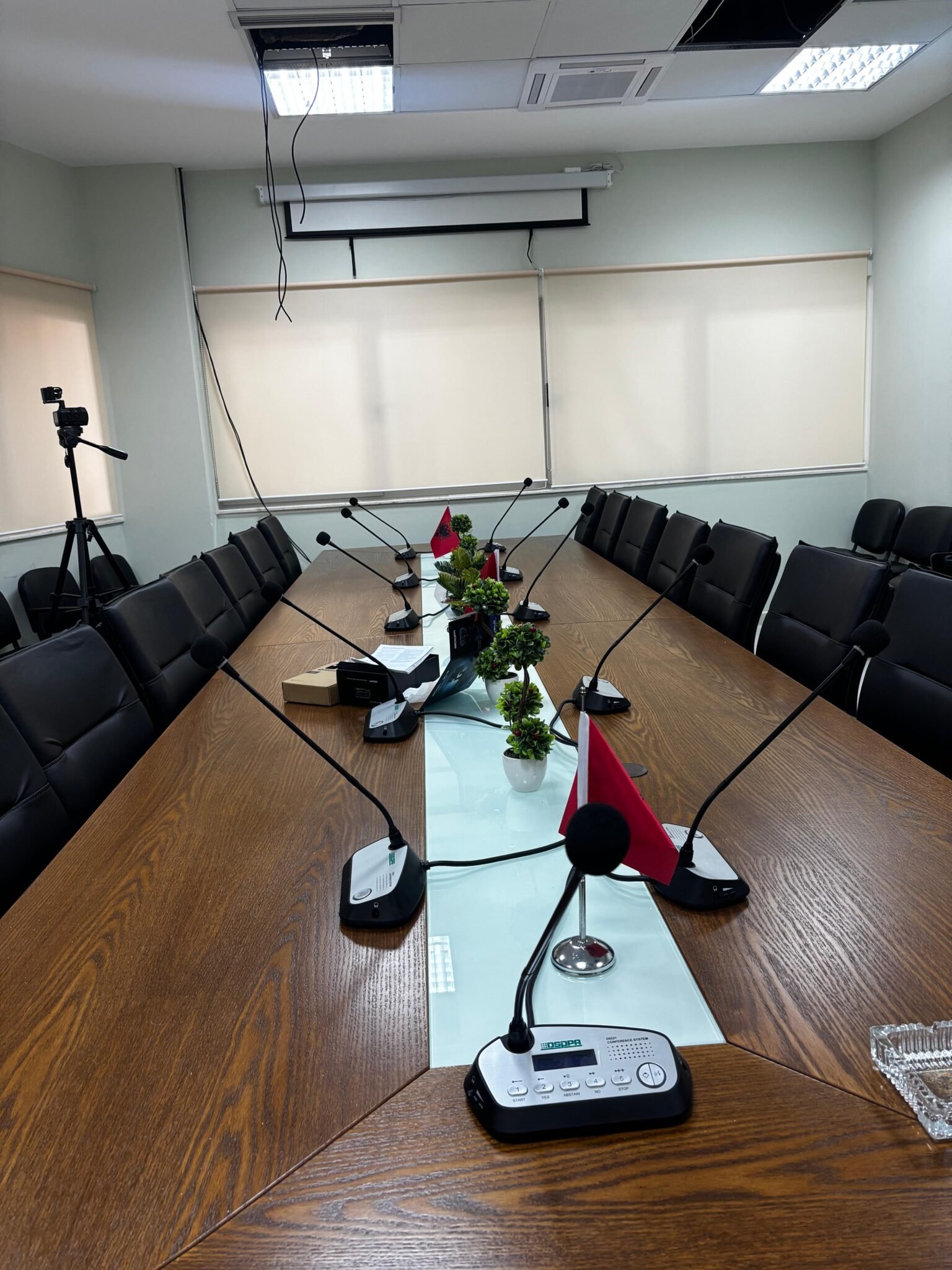 Në kuadër të projektit është realizuar me sukses instalimi dhe konfigurimi i një sistemi audio-konference qëndror, i përbërë nga komponentët më të përparuar të teknologjisë profesionale audio.